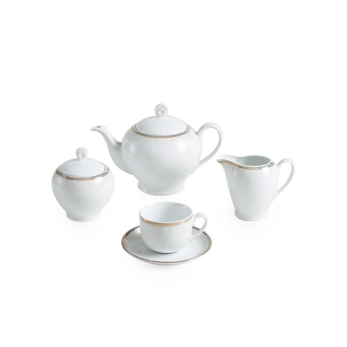 این مجموعه کامل ۱۲ نفره شامل ظروف متنوعی برای سرو غذا، دسر، پیشغذا و چای است و تمامی نیازهای یک پذیرایی کامل و حرفهای را برآورده میکند.